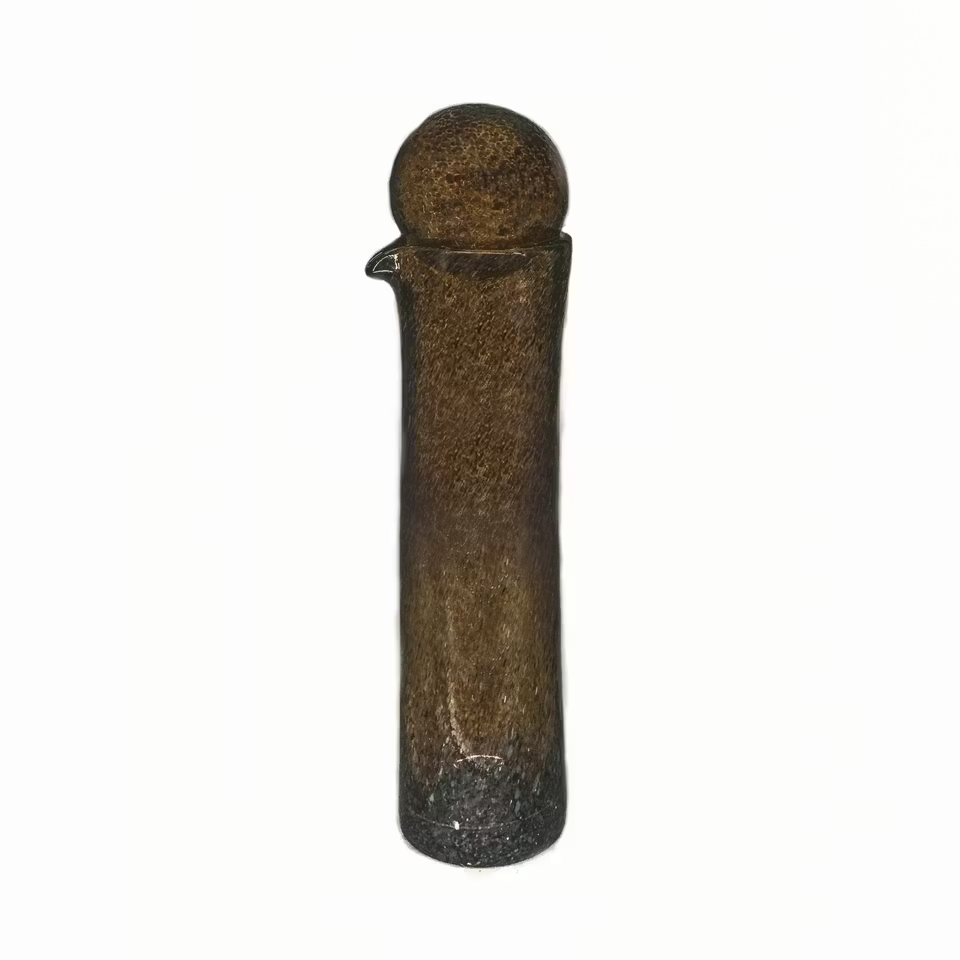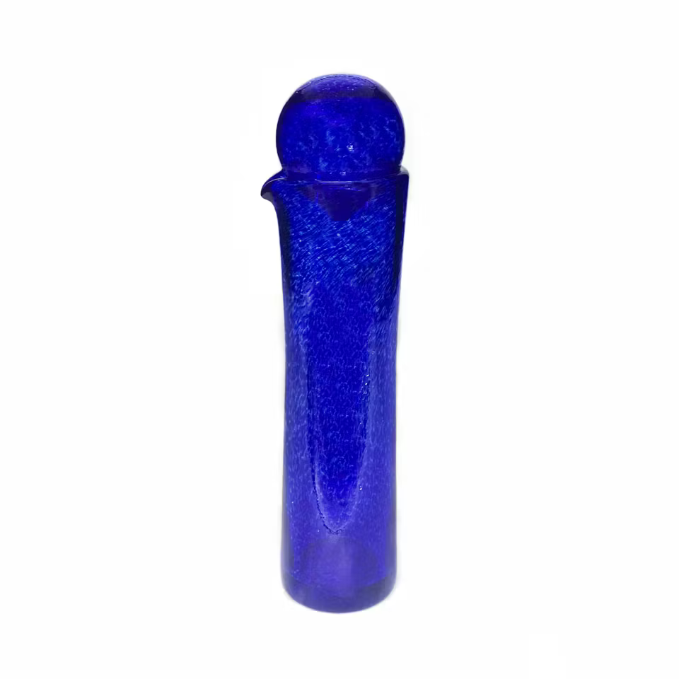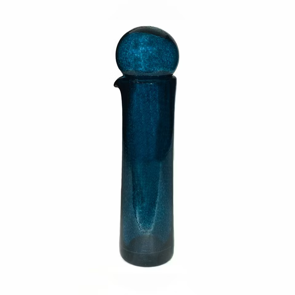 Denna munblåsta glasvas har en mjukt rundad överdel som övergår i en stilren, smalare kropp. Formen är enkel men karaktärsfull och ger ett modernt, tidlöst uttryck som passar lika bra i minimalistiska miljöer som i mer personliga inredningar.