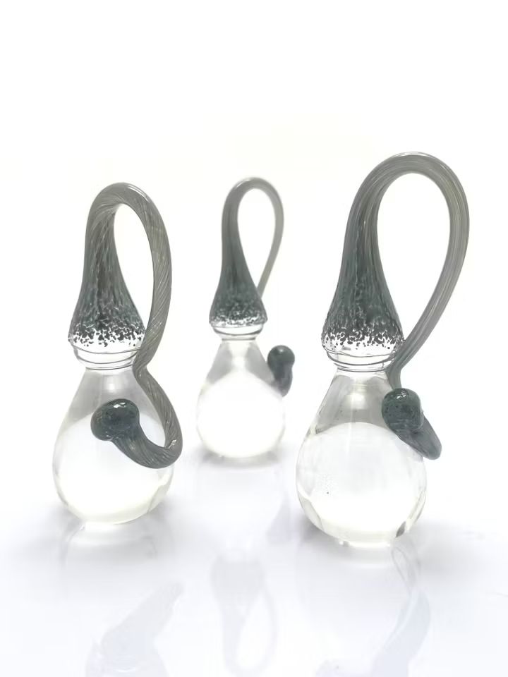 Dessa munblåsta glasfigurer är formade som små tomtar med rund kropp, markerad luva och dekorativa detaljer som ger dem ett lekfullt och charmigt uttryck. Den mjuka formen och det handgjorda utförandet gör varje figur unik, med subtila variationer som förstärker känslan av genuint hantverk.